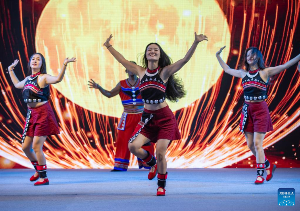 Actors perform dance of Va ethnic group at the seventh China-South Asia Expo in Kunming, southwest China's Yunnan Province, Aug. 16, 2023. The seventh China-South Asia Expo kicked off Wednesday in Kunming.