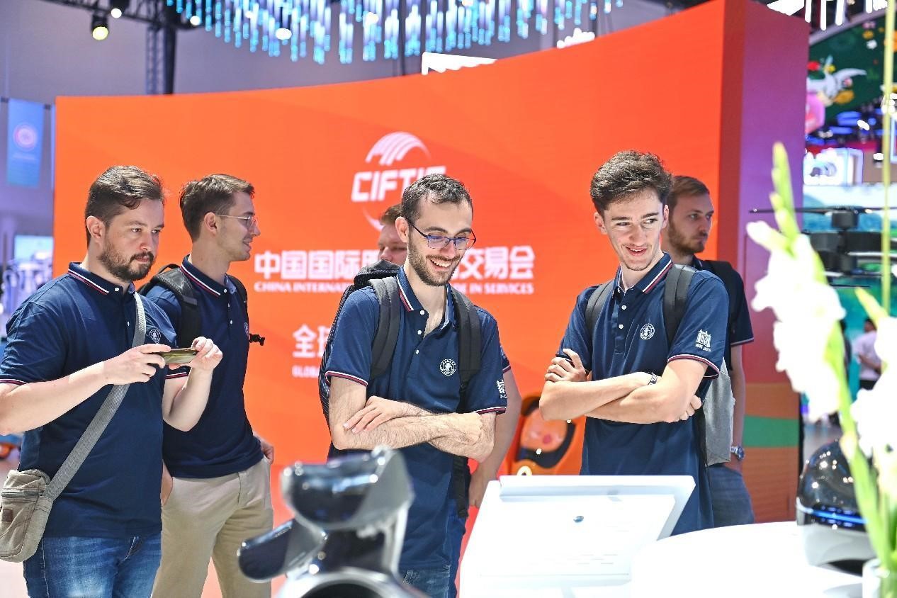 Students from Beijing Jiaotong University visit the China International Fair for Trade in Services 2023. (People's Daily Online/Hu Qingming)