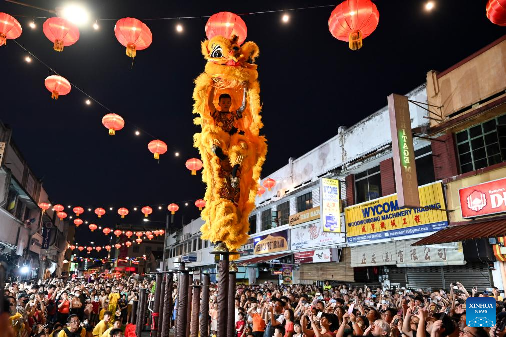 Artists perform lion dance during the Penang Chinese New Year Celebration in George Town, Penang, Malaysia, Feb. 18, 2024. (Photo by Xu Xinyu/Xinhua)