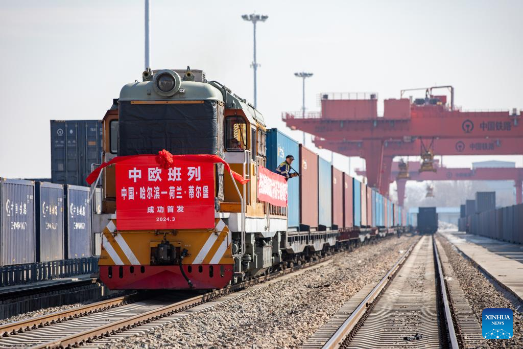 A new international freight train route linking Harbin, the capital of northeast China's Heilongjiang Province, with Tilburg in the Netherlands, has been launched, becoming the first China-Europe freight train service connecting the border province with a city in the Netherlands.