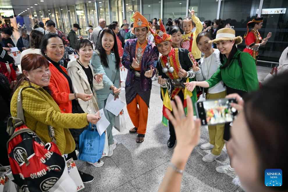 Passengers on board flight MU9629 are welcomed at Kuala Lumpur International Airport, Malaysia, March 16, 2024. China Eastern Airlines marked inaugural Kunming to Kuala Lumpur flight on Saturday. (Xinhua/Cheng Yiheng)