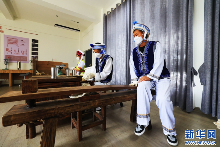 Photo taken on April 1st shows a staff demonstrating traditional tea-making technique at the Xiaguan Tuocha Tea House. (Xinhua/Zhao Pufan)