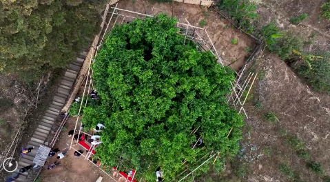 An ancient tea tree in Yunnan Province has stood proudly for more than 1,000 years. At a tea-picking ceremony, 35 villagers hand-picked tea leaves from this old tree which is revered as the "ancient tea king."