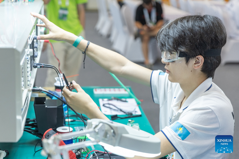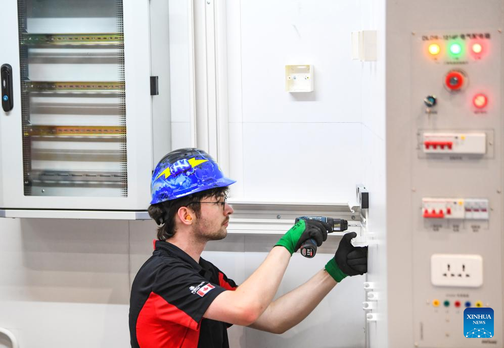 A contestant is pictured during a contest of the second Belt and Road International Skills Competition in southwest China's Chongqing Municipality on June 24, 2024. The second Belt and Road International Skills Competition kicked off at Chongqing International Expo Center here on Monday, attracting participants from 61 countries and regions. (Xinhua/Wang Quanchao)
