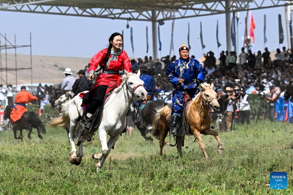 The Naadam festival kicked off here on Sunday. Naadam, usually held in mid-summer and sometimes in winter in pastoral areas of Inner Mongolia, means "games" in the Mongolian language. It often comprises wrestling, archery, and horse racing, also known as the "Three Games of Men." (Xinhua/Bei He)
