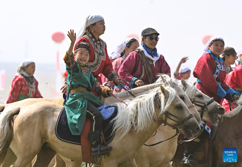 Herders on horseback are pictured during the opening ceremony of the 34th Naadam festival in Xilin Gol League, north China's Inner Mongolia Autonomous Region, July 14, 2024.