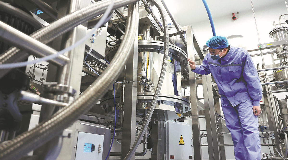 An employee checks equipment at a pharmaceutical plant in Lianyungang, Jiangsu province. GENG YUHE/FOR CHINA DAILY