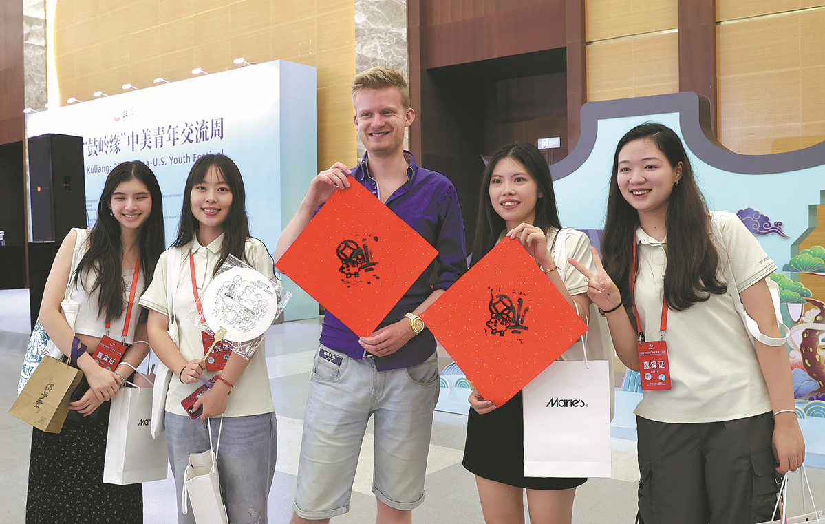 Participants show their rubbing artworks during the "Bond with Kuliang: 2024 China-US Youth Festival" in Fuzhou, Fujian province, on June 26. QIN LANG/XINHUA ? ?