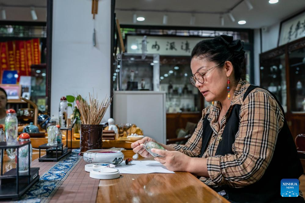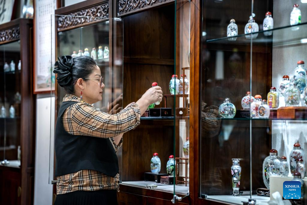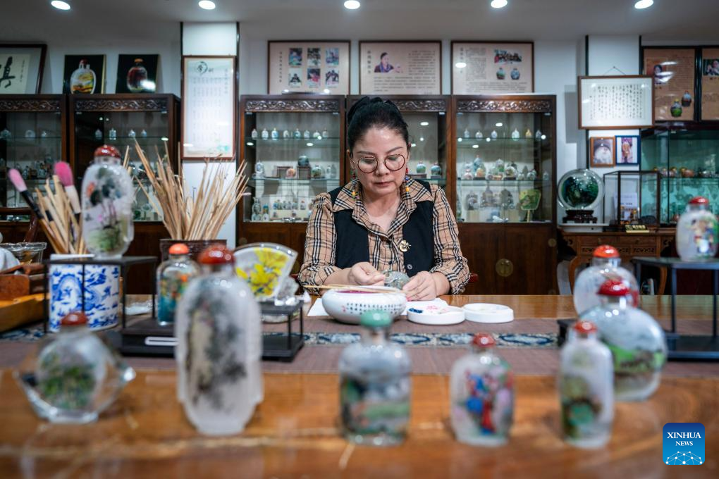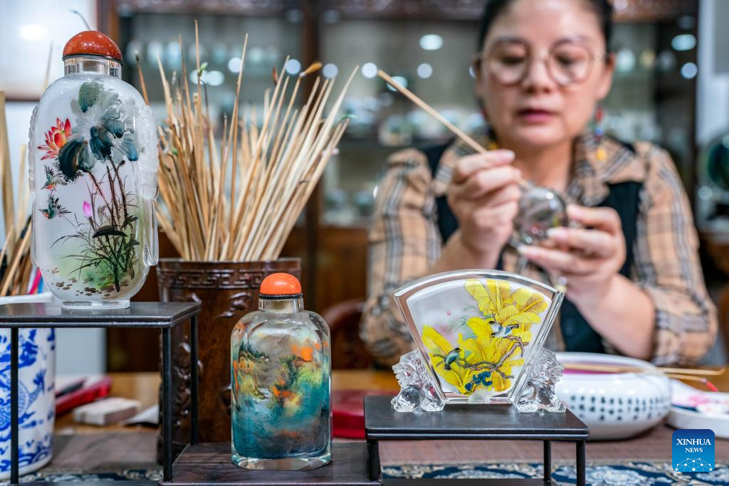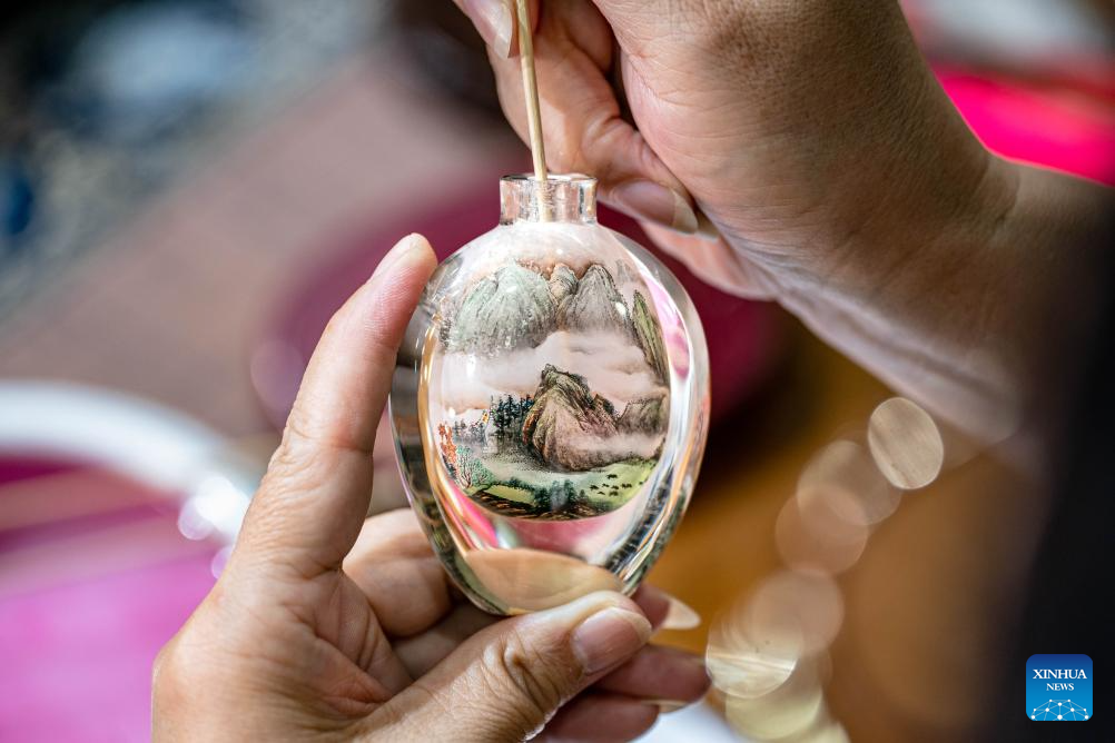 While adhering to traditional techniques, the inside painting has gained popularity among the young with innovations. "We are elevating the inside painting to a higher level, infusing this ancient craft with a new brilliance from the modern era," Sun said. (Xinhua/Hu Chao)