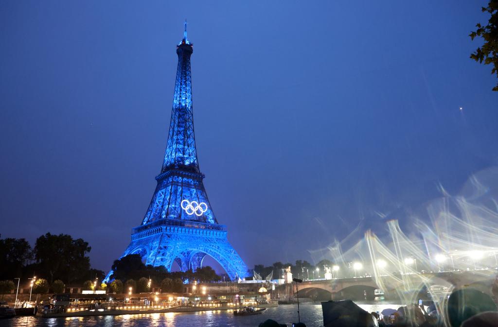 The Eiffel Tower is illuminated during the opening ceremony of the Paris 2024 Olympic Games, in Paris, France, 26 July 2024. (Xinhua/Liu Xu)