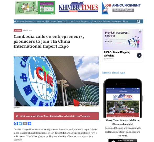 The Cambodian Ministry of Commerce calls on businesses in the country to actively participate in the 7th CIIE. [Photo/khmertimeskh.com]