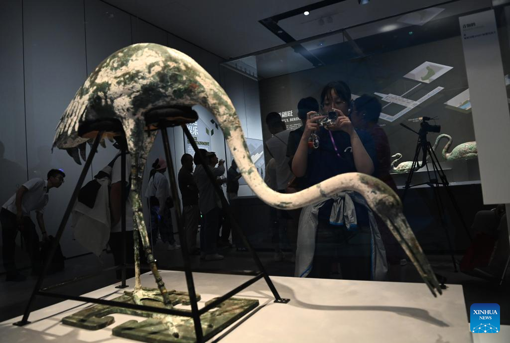 People visit an exhibition, commemorating the 50th anniversary of the discovery and excavation of the iconic Terracotta Warriors, at the Emperor Qinshihuang's Mausoleum Site Museum in Xi'an, capital of northwest China's Shaanxi Province, Sept. 8, 2024. The exhibition, which opened on Sunday, showcases 230 cultural relics in eight categories, many being revealed to the public for the first time, offering a glimpse into the era of Emperor Qinshihuang of the Qin Dynasty (221 BC-207 BC). (Xinhua/Li Yibo)