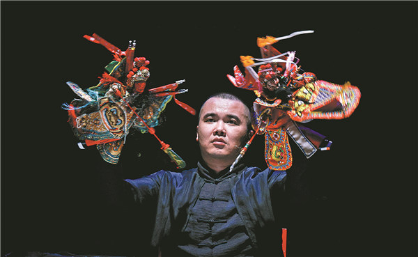 Riding Alone, a one-man show by puppetry artist Hong Jindiao, featuring four types of handmade puppets — string, glove, stick and shadow puppets — was staged in Beijing on Sept 6. [Photo by Zhang Bonan/For China Daily]
