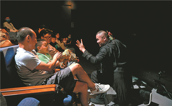 Hong interacts with the audience during the show at the Drum Tower West Theatre in Beijing. [Photo by Zhang Bonan/For China Daily]?