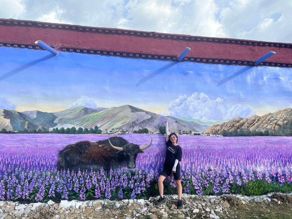 An Nianchu, a young artist from Guizhou province, blends tradition and modernity to beautify the rural environment in the Tibetan village of Cha in Lhasa, the capital of the Xizang autonomous region, through innovative 3D mural creations. [Photo provided to chinadaily.com.cn]