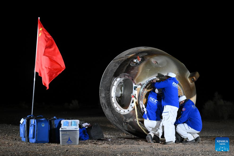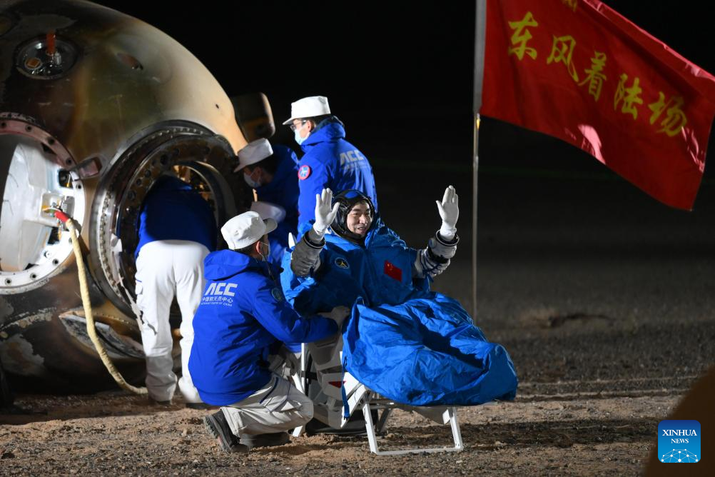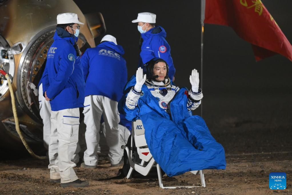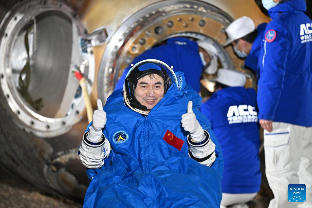 Shenzhou-18's return capsule, carrying astronauts Ye Guangfu, Li Cong and Li Guangsu, touched down at the Dongfeng landing site in north China's Inner Mongolia Autonomous Region at 1:24 a.m. (Beijing Time). The crew had all left the return capsule by 2:15 a.m., according to the China Manned Space Agency (CMSA).