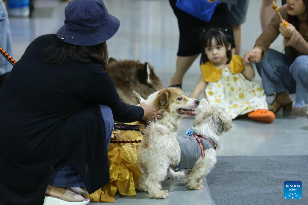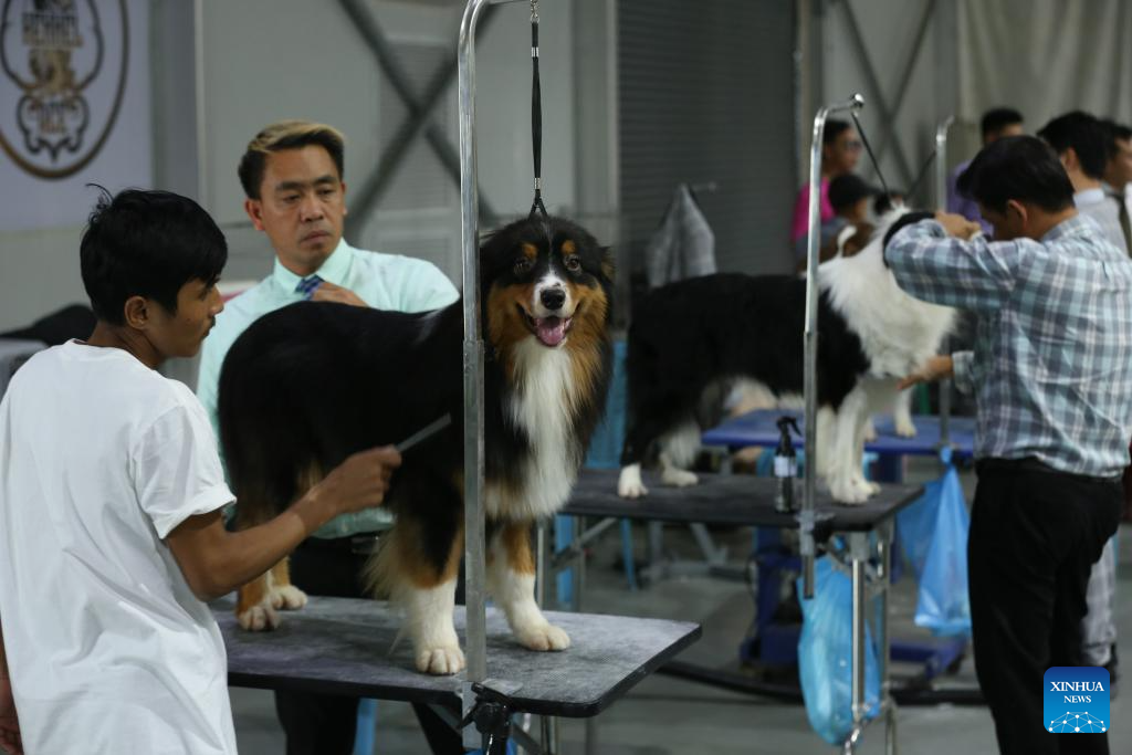 Pet dogs are seen during the Myanmar Pet Expo 2024 in Yangon, Myanmar, Nov. 3, 2024. The Myanmar Pet Expo 2024 was held in Yangon from Nov. 2 to 3. (Xinhua/Myo Kyaw Soe)