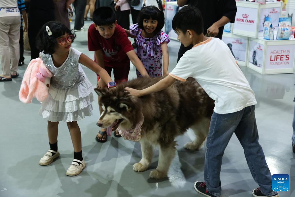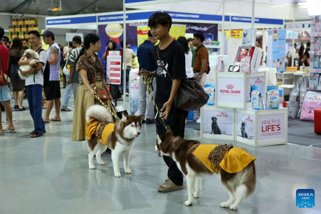 People visit the Myanmar Pet Expo 2024 in Yangon, Myanmar, Nov. 3, 2024. The Myanmar Pet Expo 2024 was held in Yangon from Nov. 2 to 3. (Xinhua/Myo Kyaw Soe)