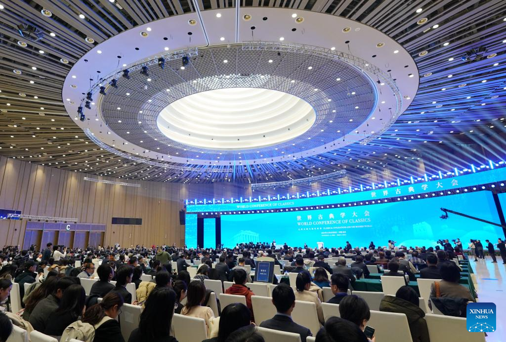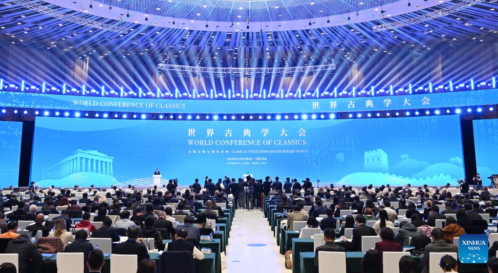 The opening ceremony of the World Conference of Classics is held in Beijing, capital of China, on Nov. 7, 2024. With the theme "Classical Civilizations and the Modern World," the World Conference of Classics, co-organized by China and Greece, is slated from Nov. 6 to 8 in Beijing. (Xinhua/Li He)