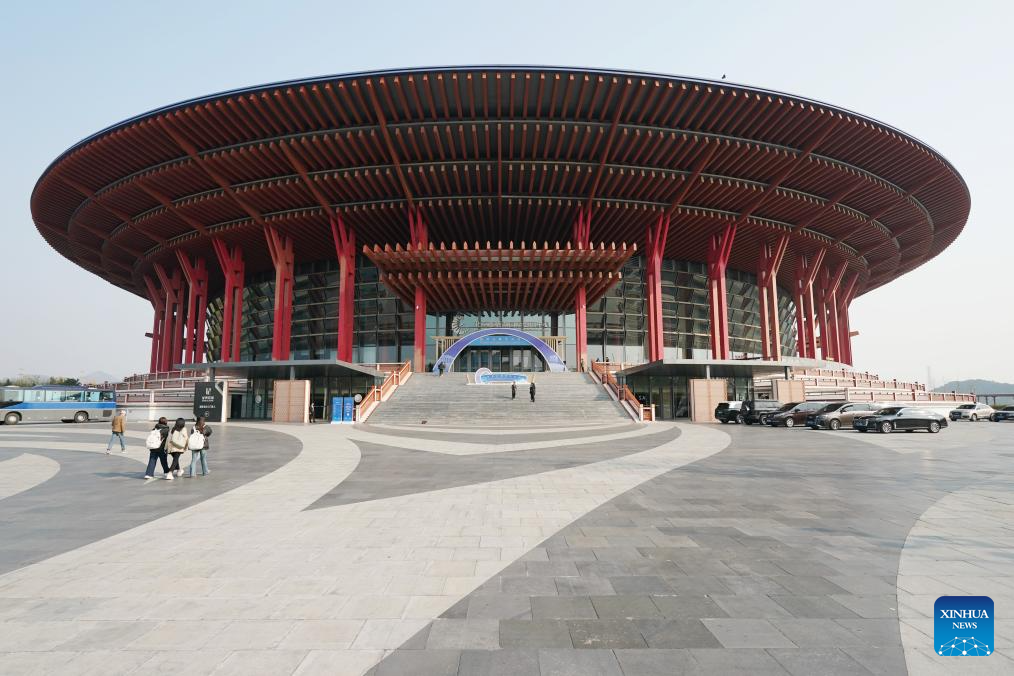 This photo taken on Nov. 7, 2024 shows a view of the Yanqi Lake International Convention & Exhibition Center, venue for the opening ceremony of the World Conference of Classics, in Beijing, capital of China. With the theme "Classical Civilizations and the Modern World," the World Conference of Classics, co-organized by China and Greece, is slated from Nov. 6 to 8 in Beijing. (Xinhua/Zhang Chenlin)