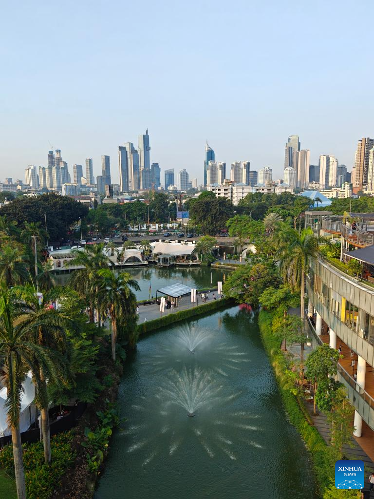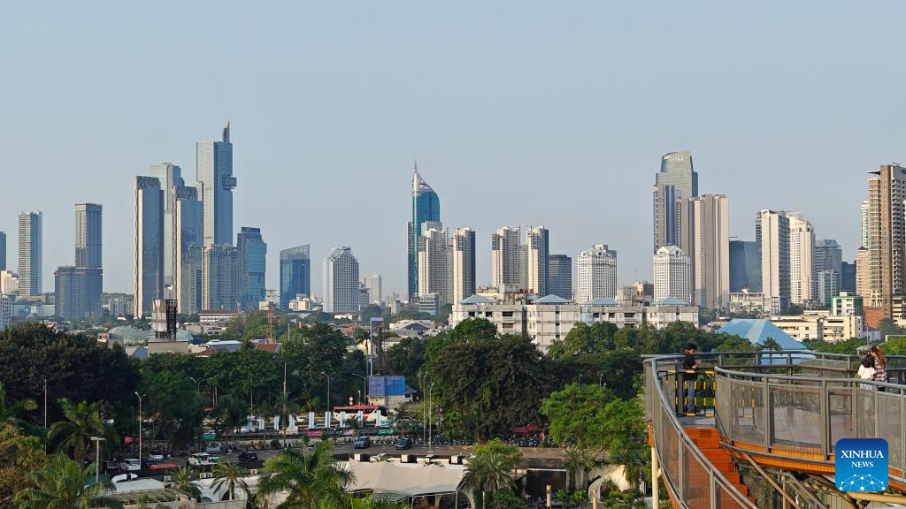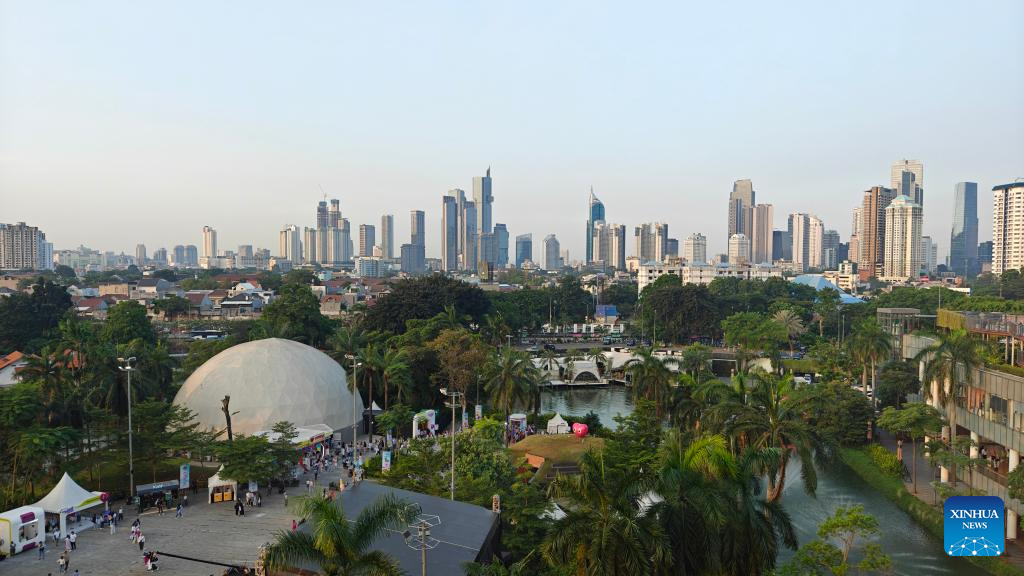 This photo taken with a mobile phone shows a city view taken from Senayan Park in Jakarta, Indonesia, July 12, 2024. Located on the northwest coast of Java Island, Jakarta is the largest city in Indonesia and is currently the political, economic and cultural center of the country. (Xinhua/Xu Qin)