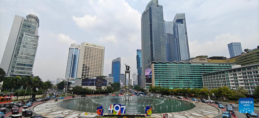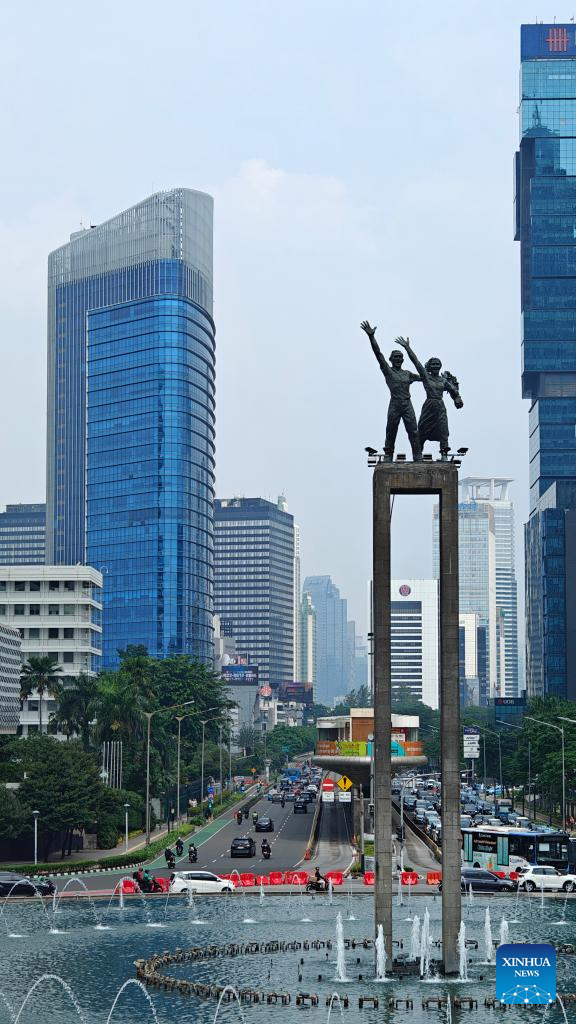 This photo taken with a mobile phone shows a view near Selamat Datang Monument in Jakarta, Indonesia, July 10, 2024. Located on the northwest coast of Java Island, Jakarta is the largest city in Indonesia and is currently the political, economic and cultural center of the country. (Xinhua/Xu Qin)