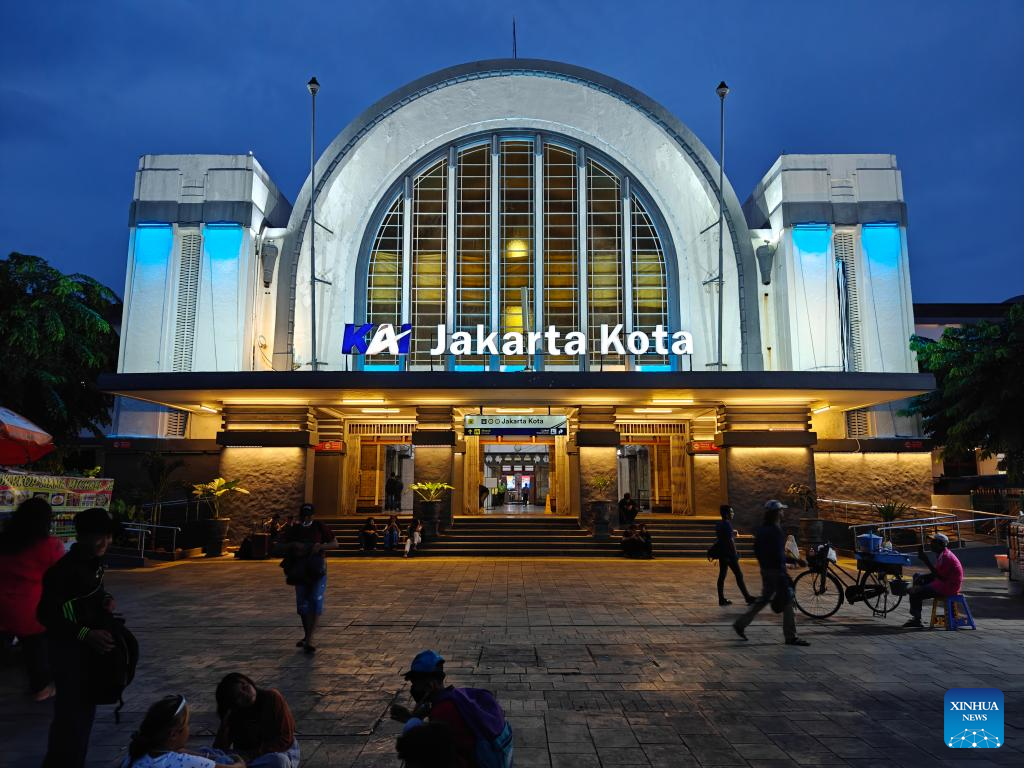 This photo taken with a mobile phone shows the Jakarta City Railway Station in Jakarta, Indonesia, Nov. 2, 2024. Located on the northwest coast of Java Island, Jakarta is the largest city in Indonesia and is currently the political, economic and cultural center of the country. (Xinhua/Xu Qin)