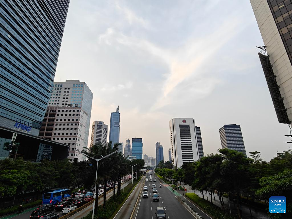 This photo taken with a mobile phone shows traffic flow on Sudirman Street in Jakarta, Indonesia, July 13, 2024. Located on the northwest coast of Java Island, Jakarta is the largest city in Indonesia and is currently the political, economic and cultural center of the country. (Xinhua/Xu Qin)