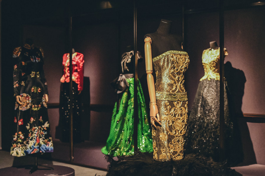 Designers' clothes carrying traditional and modern elements are on display at the exhibition in Singapore that will run through Jan 5. [Photo provided to chinadaily.com.cn]