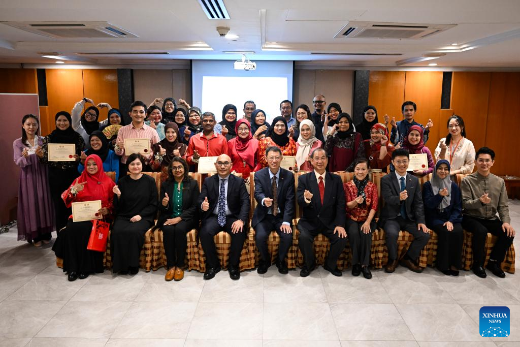 Participants pose for a group photo during a ceremony marking the graduation of a Chinese language training program for Malaysian government officials in Kuala Lumpur, Malaysia, Nov. 20, 2024. (Xinhua/Cheng Yiheng)