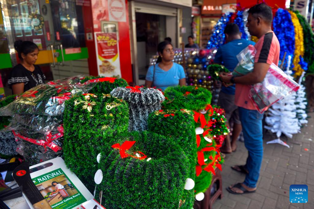 People shop for Christmas decorations at a market in Colombo, Sri Lanka on Dec. 11, 2024. (Photo by Gayan Sameera/Xinhua)