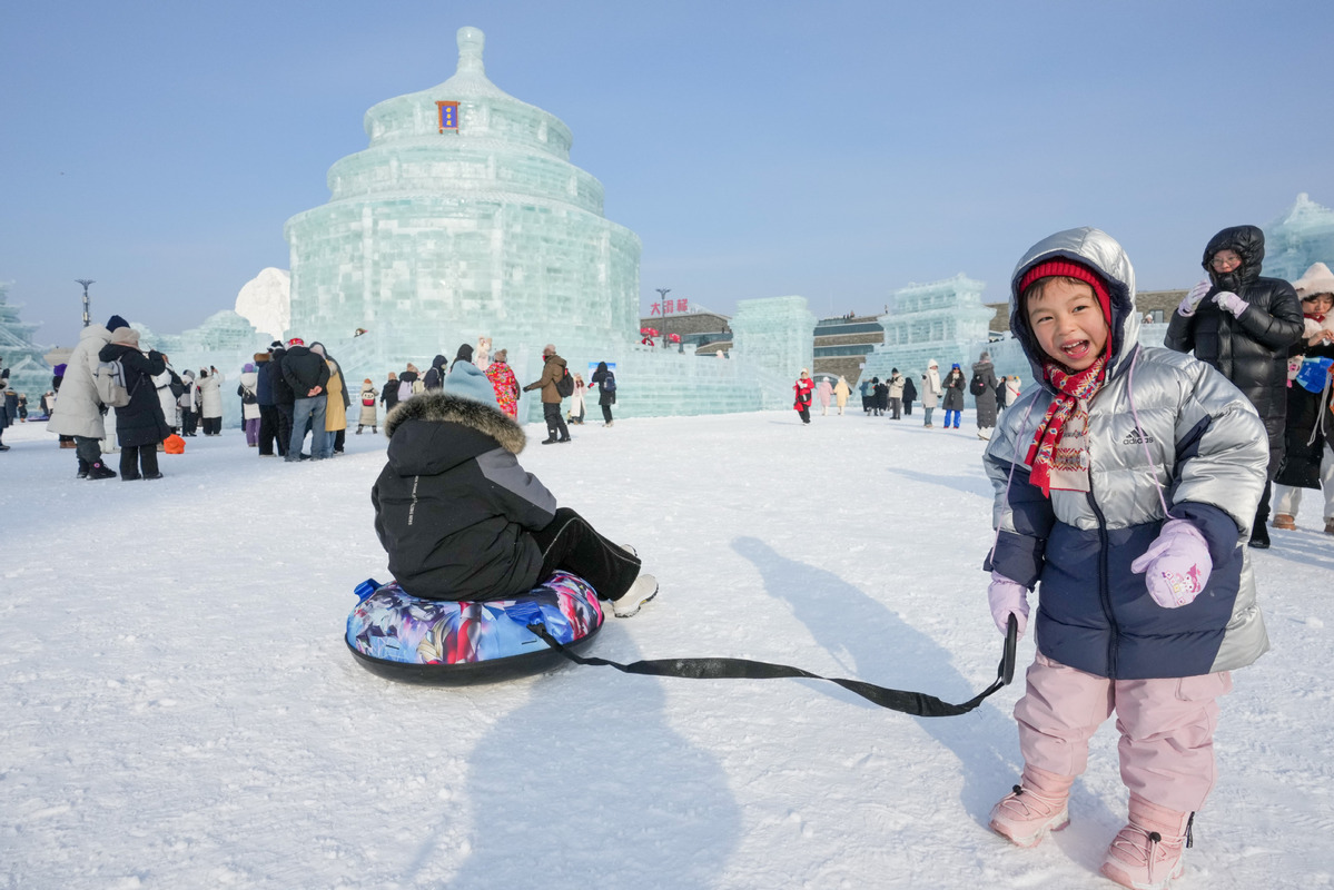 Tourists visit the Harbin Ice-Snow World in Harbin, Northeast China's Heilongjiang province, Dec 21, 2024. [Photo/Xinhua]
