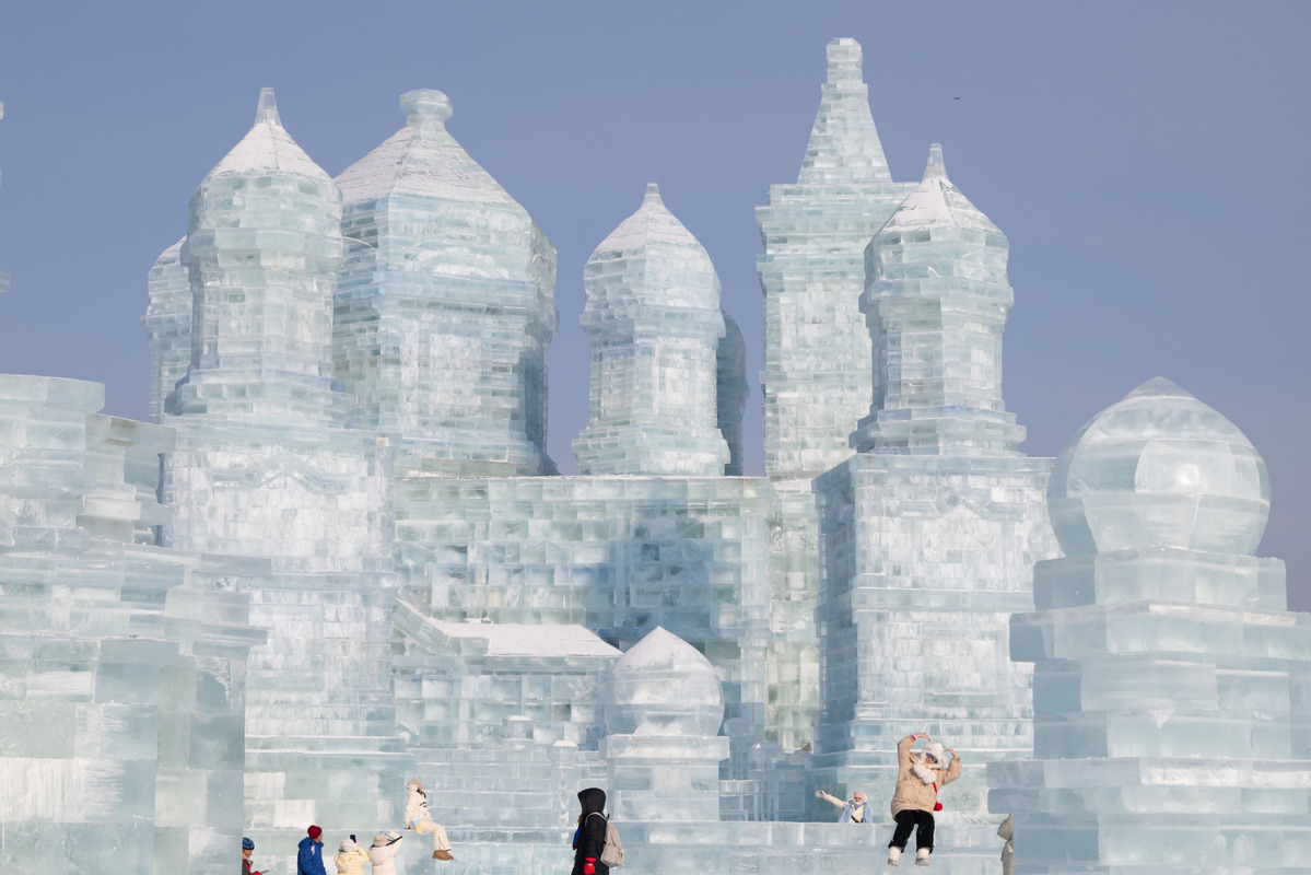 "The ice sculptures are incredibly exquisite. It's hard to imagine that they are made of ice blocks harvested from the Songhua River. Each piece of artwork showcases the superb craftsmanship of the artists," said Zhong Xueying, another tourist from Zhejiang.