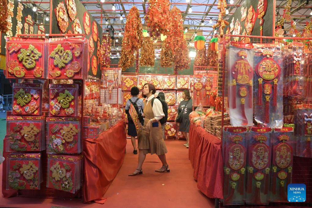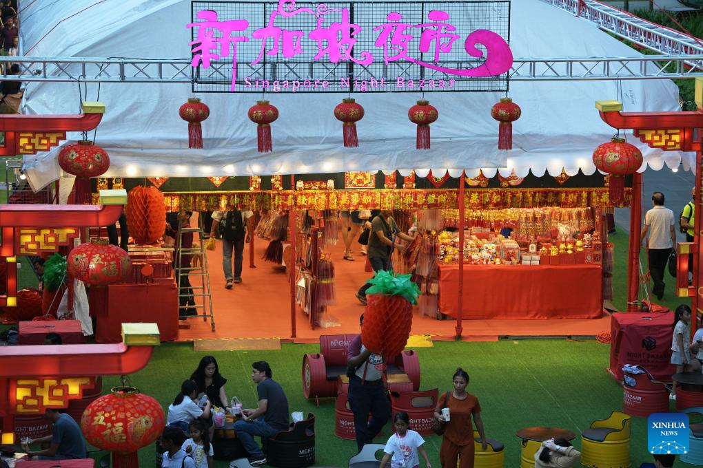 People visit a temporary neighborhood Lunar New Year night market in Singapore's Bukit Panjang on Jan. 6, 2025. (Photo by Then Chih Wey/Xinhua)