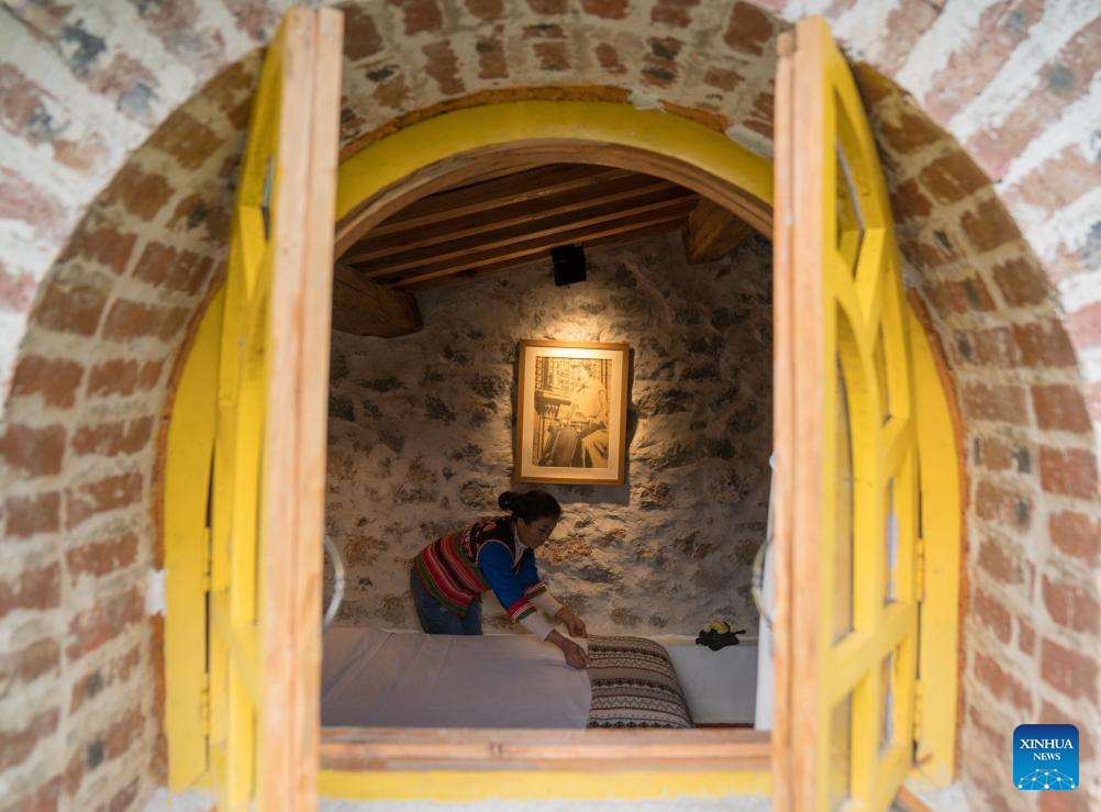 A staff member tidies up a guestroom at a homestay in Jinuoshan Town in Jinghong City of Xishuangbanna Dai Autonomous Prefecture, southwest China's Yunnan Province, Jan. 5, 2025.