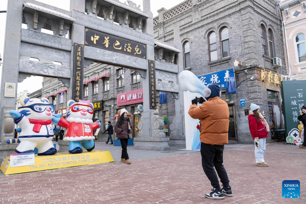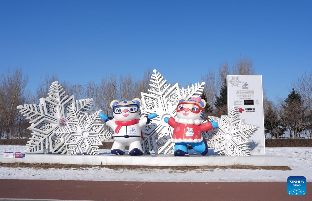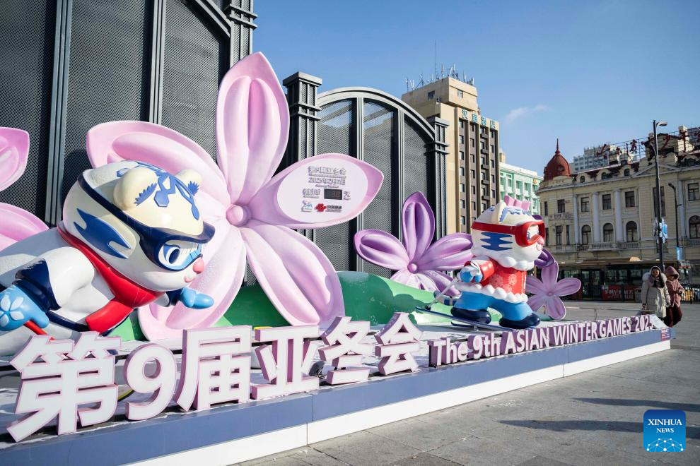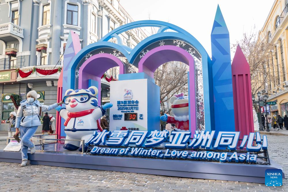 A street decoration of the 9th Asian Winter Games Harbin 2025 is seen in Harbin, northeast China's Heilongjiang Province, on Jan. 8, 2025. The countdown to the 9th Asian Winter Games Harbin 2025 hits the 30-day mark on Jan. 8, 2025. (Xinhua/Xie Jianfei)