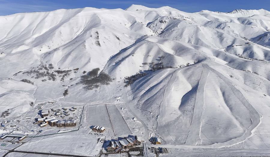 An aerial drone photo taken on Dec. 3, 2024 shows part of the Jikepulin International Ski Resort in Altay Prefecture, northwest China's Xinjiang Uygur Autonomous Region. (Xinhua/Hu Huhu)