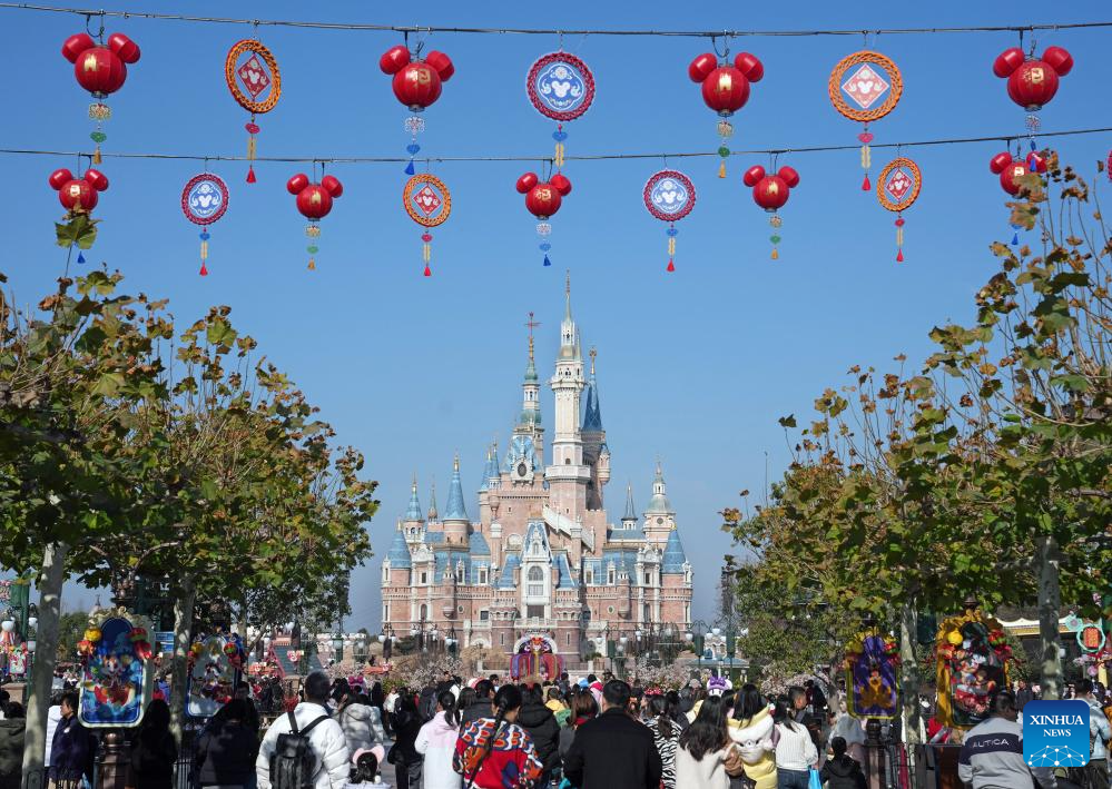 Tourists pose for pictures at Shanghai Disney Resort of east China's Shanghai, Jan. 22, 2025.
