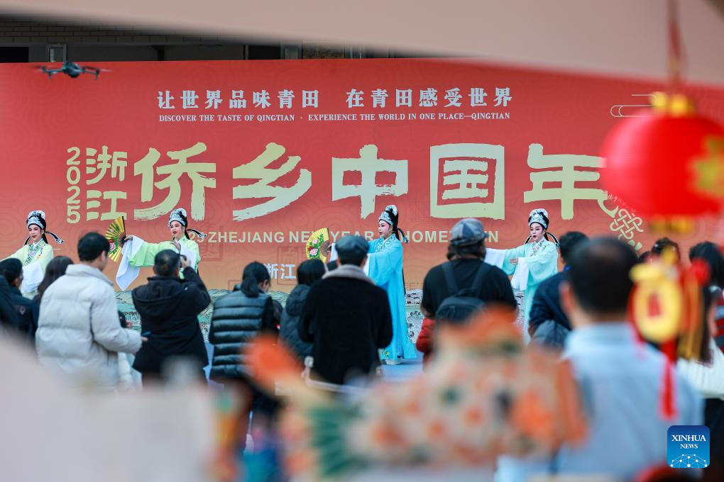 People participate in Spring Festival celebration activities in Qingtian County of Lishui City, east China's Zhejiang Province, Jan. 23, 2025.