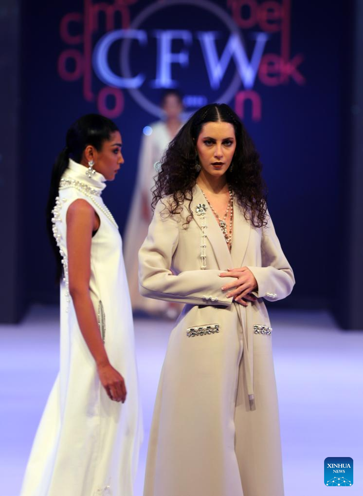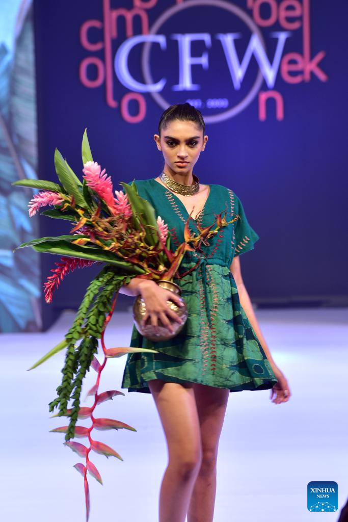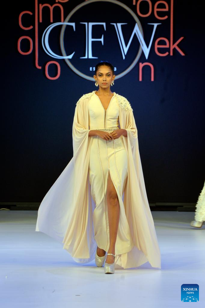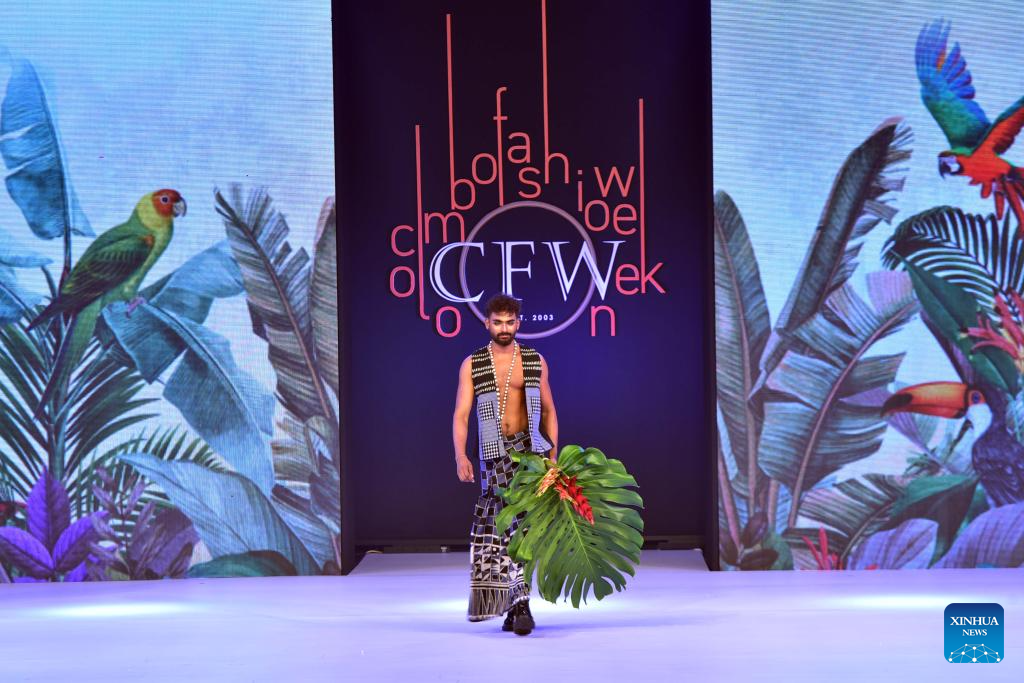 Model present creations during the Colombo Fashion Week in Colombo, Sri Lanka, on Feb. 19, 2025. The Colombo Fashion Week kicked off here on Wednesday. (Photo by Ajith Perera/Xinhua)