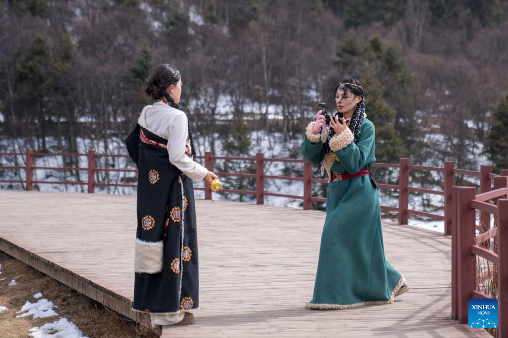 Tourists take photos at Potatso National Park in Deqen Tibetan Autonomous Prefecture, southwest China's Yunnan Province, Feb. 23, 2025. (Photo by Peng Yikai/Xinhua)