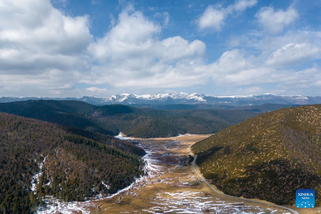 This aerial drone photo taken on Feb. 23, 2025 shows a view of Potatso National Park in Deqen Tibetan Autonomous Prefecture, southwest China's Yunnan Province. (Photo by Peng Yikai/Xinhua)