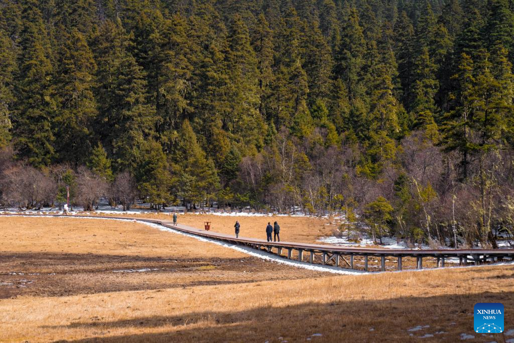 Tourists visit Potatso National Park in Deqen Tibetan Autonomous Prefecture, southwest China's Yunnan Province, Feb. 23, 2025. (Photo by Peng Yikai/Xinhua)
