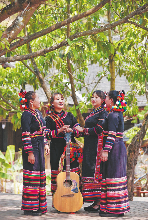 Li (second from left) practices Lahu songs. CHINA DAILY ? ?