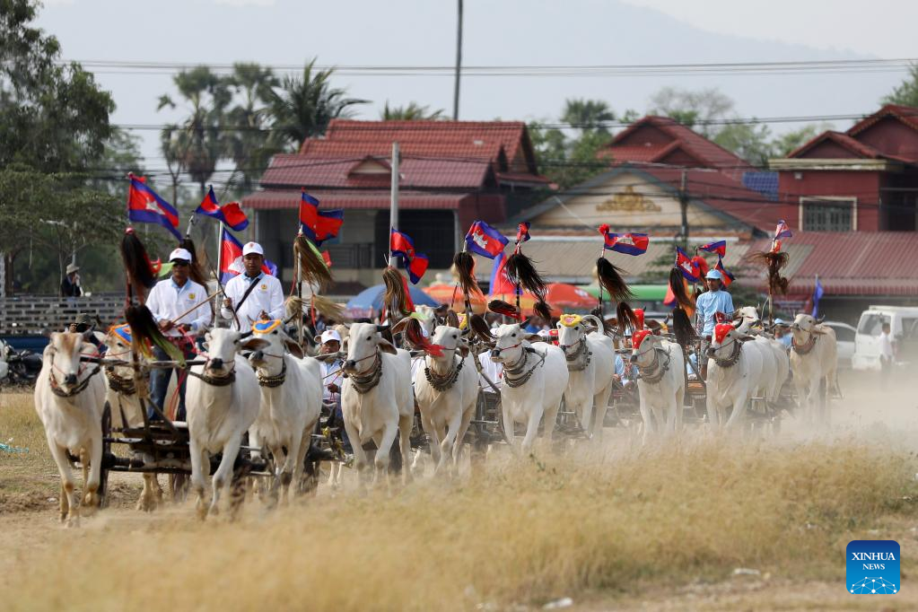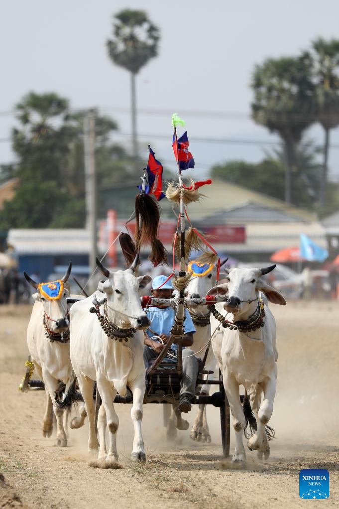 Convened in Chbar Mon town's Snor I village, roughly 50 km west of the capital Phnom Penh, contenders raced their ox-carts pulled by two oxen in a 1.3 km-meter-dirt track, as hundreds of spectators enthusiastically watched and cheered on the winners of the race.