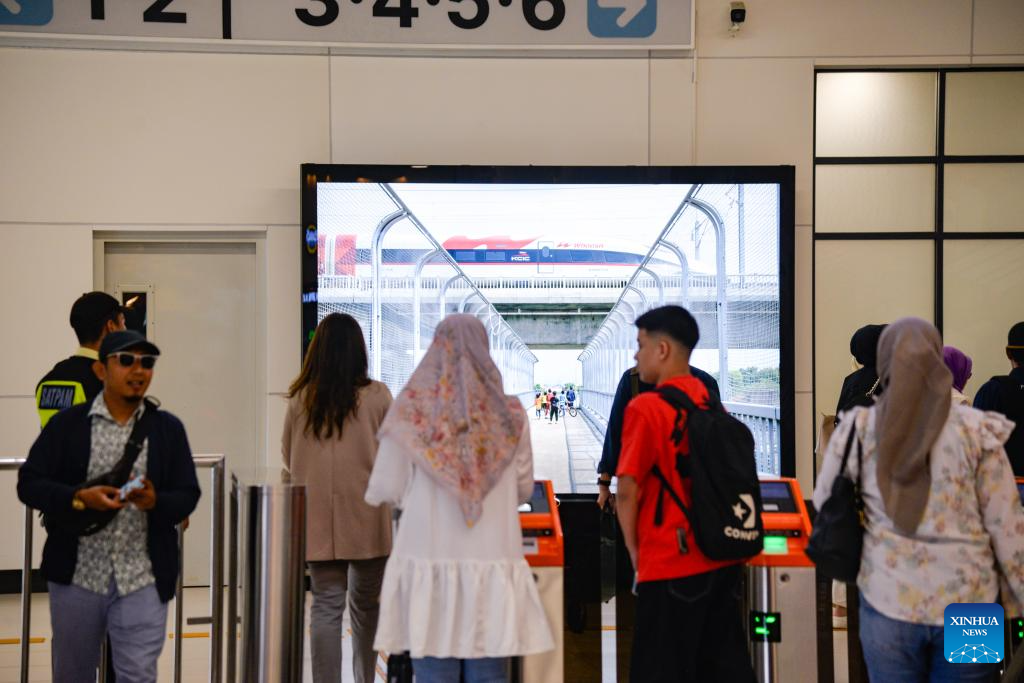 The Jakarta-Bandung High-Speed Railway, locally known as Whoosh, has transported 9 million passengers as of Sunday since its launch on Oct. 17, 2023, PT Kereta Cepat Indonesia-China (KCIC), a joint venture consortium between Indonesian and Chinese firms that constructs and operates the railway, announced on Monday. (Xinhua/Xu Qin)
