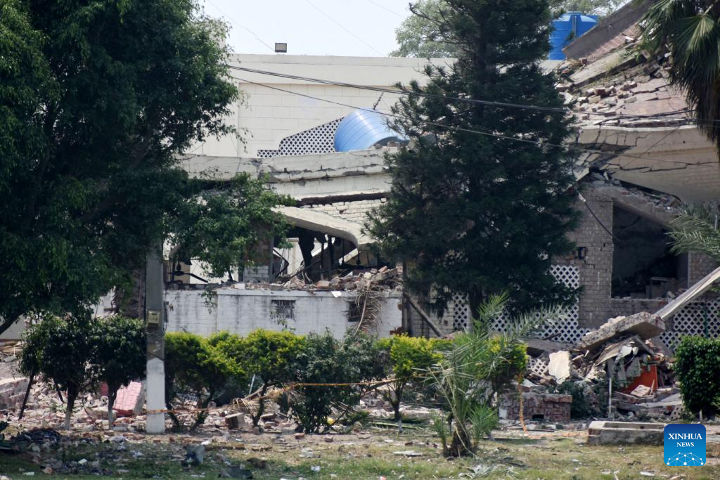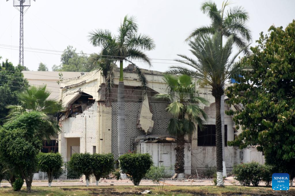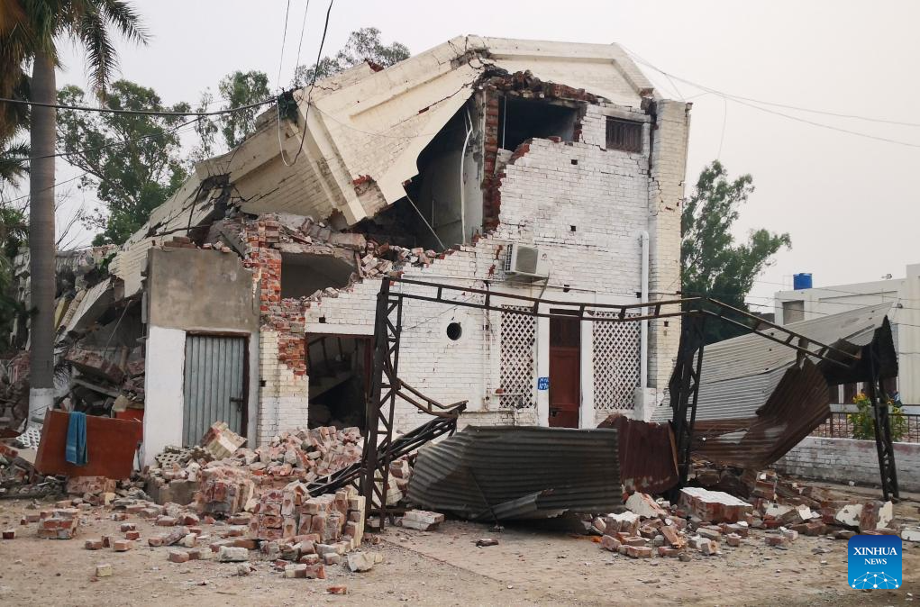 A destroyed building is seen after an Indian missile attack in Muridke, a town near Lahore, Pakistan on May 7, 2025. Twenty-six people, including women and children, were killed and 46 others injured when India attacked civilian settlements in six areas of Pakistan on Tuesday night and Wednesday morning, a spokesperson for the Pakistani army's media wing said. (Photo by Sajjad/Xinhua)