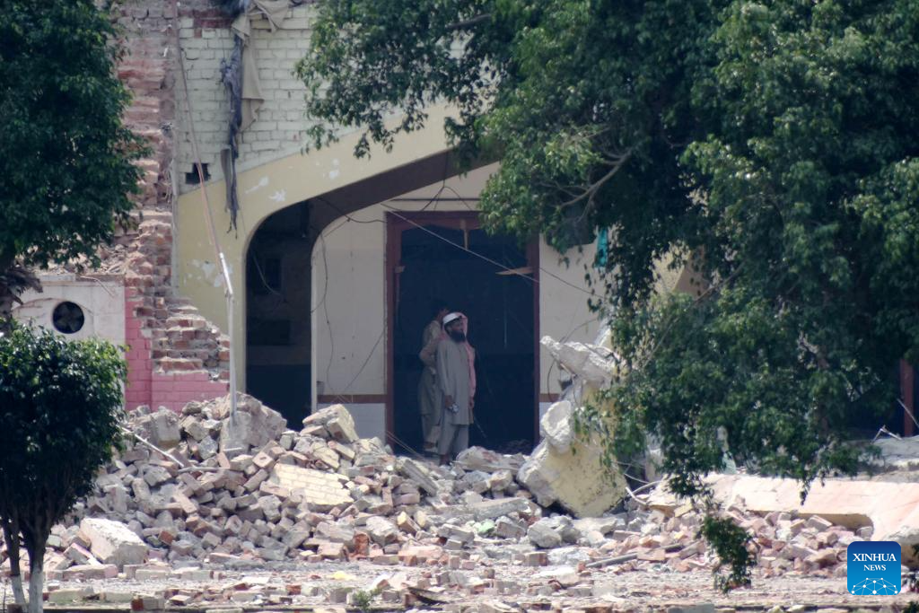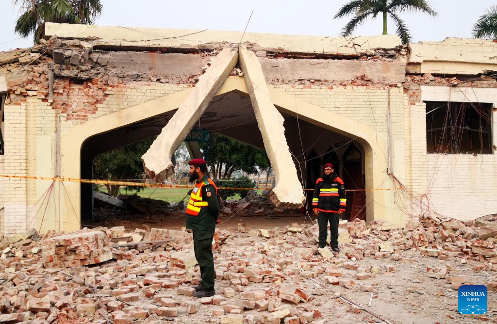 A damaged mosque is seen after an overnight Indian missile attack in Bahawalpur district, Punjab province, eastern Pakistan on May 7, 2025. Twenty-six people, including women and children, were killed and 46 others injured when India attacked civilian settlements in six areas of Pakistan on Tuesday night and Wednesday morning, a spokesperson for the Pakistani army's media wing said. (Photo by Mansoor Abbas/Xinhua)
