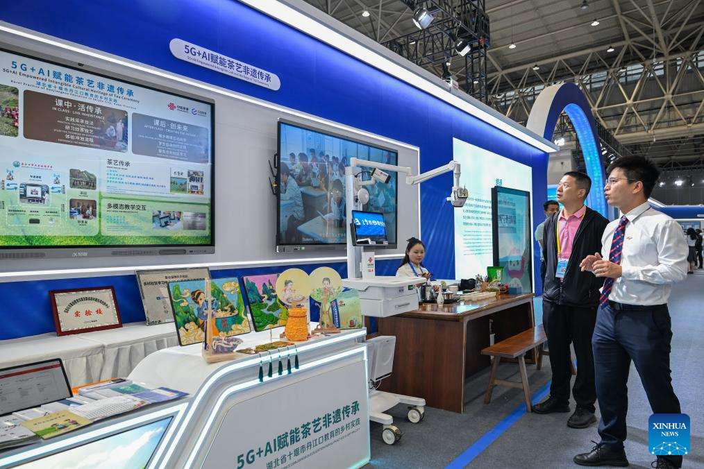 People visit the Digital Education Achievements Exhibition of the 2025 World Digital Education Conference in Wuhan, central China's Hubei Province, May 14, 2025. Under the theme of "Education Development and Transformation: The Era of Intelligence," the 2025 World Digital Education Conference opened here on Tuesday. (Xinhua/Du Zixuan)