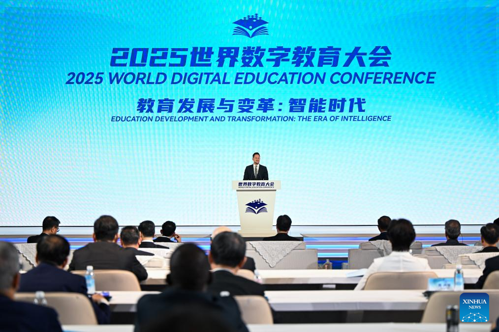 People attend the opening ceremony of the 2025 World Digital Education Conference in Wuhan, central China's Hubei Province, May 14, 2025. Under the theme of "Education Development and Transformation: The Era of Intelligence," the 2025 World Digital Education Conference opened here on Tuesday. (Xinhua/Du Zixuan)